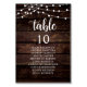 Wedding Dinner Guest Seating Table Chart Card, Modern Rustic Script, String lights, Dark Wood background