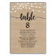 Wedding Dinner Guest Seating Table Chart Card, Modern Rustic Script, String lights, brown wood background
