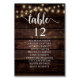 Wedding Dinner Guest Seating Table Chart Card, Modern Rustic Script, String lights, Dark Wood background