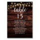 Wedding Dinner Guest Seating Table Chart Card, Modern Rustic Script, String lights, cottage Dark Wood background