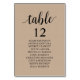 Wedding Dinner Guest Seating Table Chart Card, Modern Rustic Script, Brown Kraft Background.