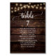 Wedding Dinner Guest Seating Table Chart Card, Modern Rustic Script, String lights, Dark Wood background