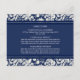Direction card inserts for wedding in elegant and modern dark navy blue and cream off white classic floral damask pattern. Customise these cards with your wedding directions or other information to be included with your wedding invitations, also perfect for anniversary parties or birthday parties. Available in a wide range of matching wedding products.