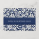 Direction card inserts for wedding in elegant and modern dark navy blue and white classic floral damask pattern. Customise these cards with your wedding directions or other information to be included with your wedding invitations, also perfect for anniversary parties or birthday parties. Available in a wide range of matching wedding products.