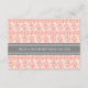 Direction card inserts for wedding in elegant and modern peach orange pink, grey and white classic and romantic floral vintage damask pattern. Customise these cards with your wedding directions or other information to be included with your wedding invitations, also perfect for anniversary parties or birthday parties. Available in a wide range of matching wedding products.