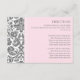 Direction card inserts for wedding in elegant and modern blush light pink, dark charcoal grey and white chic and classic floral damask vintage pattern. Customise these cards with your wedding directions or other information to be included with your wedding invitations, also perfect for anniversary parties or birthday parties. Available in a wide range of matching wedding products.