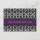 Direction card inserts for wedding in elegant and modern eggplant dark purple, black and white classic floral damask pattern. Customise these cards with your wedding directions or other information to be included with your wedding invitations, also perfect for anniversary parties or birthday parties. Available in a wide range of matching wedding products.