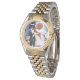 The watch is very nice, the picture is great and the watch looks like quality. The only problem I am having with it is that it is a little too large, and I also can't figure out how to open the clasp. No directions came with it. Very good. The printing is perfect and the watch keeps good time.