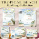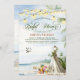 Dive into the festivities with a beachside gathering where the waves meet the sand, and love is in the air. Enveloped in soft blues and sandy hues, our invitation features a stunning wedding dress, symbolizing the elegance and romance of the occasion. Accented with champagne, cocktails and tropical florals, this invitation promises a celebration as beautiful as the bride-to-be. Click on personalize/customize for further editing.