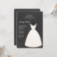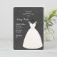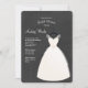 A chic invitation featuring a wedding dress, on a hanger, against a dark charcoal background. <br/><br/>The card is easy to customise with your wording, font, font colour, paper shape options and choice of six paper types.<br/><br/>Not exactly what you're looking for? All our products can be custom designed to meet your needs at no extra charge.<br/><br/>Simply contact us at askpixieprints@aol.com.<br/><br/>Coordinating products available: Just ask us!