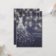 White shiny diamonds wedding dress on a dark midnight navy blue chalkboard background with vertical strings of twinkle lights making a simple modern elegant winter night bridal shower invitation.