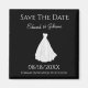 Elegant Save the Date Magnet with a white wedding dress. Customise with your name and wedding date. Creative way to get your guests to save the date for your wedding.