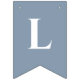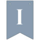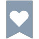 A simple bunting flags banner for a dusty blue wedding, with the words "Mr. & Mrs." and the family name of the new couple and two hearts, all in white on dusty blue background.