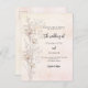 A rose gold, blush pink gradient background. Cream coloured flowers. Personalise and add your names and party details.