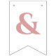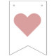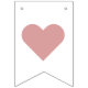 A simple bunting flags banner for a dusty rose wedding, with the words "Mr. & Mrs." and the family name of the new couple and 3 hearts. The text is in white caps on dusty rose background, the hearts and the ampersand, that are dusty rose on white background.