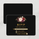 Wedding Elegant Burgundy Floral Black Gold RSVP Card
