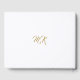 An elegant and classy design showcasing a gold formal script monogram and text on white.