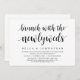 Modern Script themed, wedding elopement invitation card (Brunch With The Newlyweds). It is perfect for your wedding elopement casual lakeside wedding dinner, dancing and party.