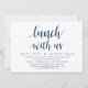 Modern Script in Classy Navy Blue theme, wedding elopement invitation card (Lunch With us, The Newlyweds). It is perfect for your wedding elopement casual lakeside celebration.