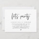 Modern black and white themed, wedding elopement invitation card (let's party). It is perfect for your wedding elopement reception / post wedding celebration party. Add your details in matching black font / lettering.