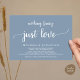 Mark the beginning of your forever with elegance using our contemporary rustic dusty blue themed wedding elopement celebration invitation card, "Nothing Fancy Just Love". Perfect for couples extending their joyous occasion, this invitation exudes sophistication with a hint of playfulness, setting the stage for a memorable event. Adorned with a timeless modern script design theme, it adds a touch of refined charm to your festivities. Crafted by TeeshaDerrick, this invitation promises to beautifully capture your love story.