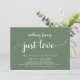 Mark the beginning of your forever with elegance using our contemporary rustic greenery sage green forest themed wedding elopement celebration invitation card, "Nothing Fancy Just Love". Perfect for couples extending their joyous occasion, this invitation exudes sophistication with a hint of playfulness, setting the stage for a memorable event. Adorned with a timeless modern script design theme, it adds a touch of refined charm to your festivities. Crafted by TeeshaDerrick, this invitation promises to beautifully capture your love story.