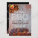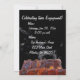 Wooden background with photos of chicken wings at top and barbecue ribs at bottom on front. Includes customisable text on front and back of card -templates are at right. Reverse side has a smokey, dark background with photo of ribs at bottom. Enjoyable engagement party barbecue invitation.