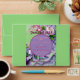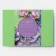 Beautiful & Elegant, Boquete of Pink & Violet Peonies with Satin Violet Bow at Bottom, surrounding A (Violet) Circle Horizon, topped with "Our Wedding" & "Date", on Layered (Two Shades at Top) Violet background.