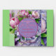 Beautiful & Elegant, Boquete of Pink & Violet Peonies with Satin Violet Bow at Bottom, surrounding A (Violet) Circle Horizon, topped with "Our Wedding" & "Date", on Layered (Two Shades at Top) Violet background.