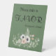 Wedding favors pedestal sign. Elegant, green, floral design. Perfect for your perfect day!