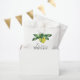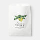This wedding favour bag features the words "Love is Sweet" in trendy typography. Watercolor lemons and leaves in shades of in shades of yellow and green frames the top. Use the template fields to add your names and wedding date or custom text. To see more citrus wedding stationery visit www.zazzle.com/dotellabelle