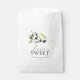 This wedding favour bag features the words "Love is Sweet" in trendy typography. A sprig of watercolor olive branch frames the top. Use the template fields to add your names and wedding date or custom text. To see more rustic wedding stationery visit www.zazzle.com/dotellabelle