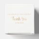 This beach, or nautical, theme wedding favour box features a gold illustrated starfish as well as the words "Thank You" in a golden, modern font. The name and date can be customised for the couple's special event and there is an optional text, message area on the back of the box. The background colour is white, but can be customised to any colour of your choice. The perfect packaging of a favour for a beach or ocean themed wedding.