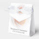 Wedding favour box peach pink rosebud. Customise this wedding favour box with your wedding details. Should you require any help with customising then contact us through the link on this page. Peach pink rosebud design personalised wedding favour box