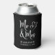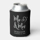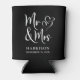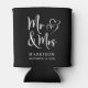 Give a wedding toast and your guests a fun souvenir keepsake of your special day with this custom black can cooler with "Mr & Mrs" written in an elegant white script and an illustration of two hearts joined together. Add your name and wedding date below.