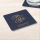 Wedding Favour Mr & Mrs Elegant Script Name Modern Square Paper Coaster