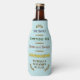 These pretty, custom wedding foam beer bottle coolers have a rustic look in shades of brown, blue, green and golden with a light blue background. The text reads, "Something Old / Something New / Something Barley / Something Brewed." Below that, the bride and groom can add their names and their wedding date, or any other short text in three lines. The back says "Thank You!" and can also be changed. These beer bottle huggers make a fun, commemorative - and useful - gift favour for members of the wedding party.