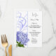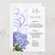 This wedding flat menu card is shown in the basic matte white paper with a art print of a lovely single hydrangea design.