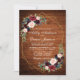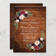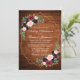 Modern Watercolor Burgundy Floral Blue Gold Geometric Frame Wedding Invitation - Rustic Wood