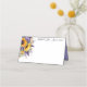 This folded name place card is shown in basic white with a lovely sunflower and lavender floral accent and has sample custom names.