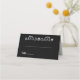 This folded name place card is shown in basic white with a black background colour, shown with a diamond sparkle scroll accent.