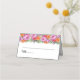 This folded name place card is shown in basic white with a lovely pink and orange colour peony floral mix accent.