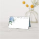 This folded name place card is shown in basic white with a lovely blue hydrangea floral accent and has sample custom names.