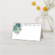 This folded name place card is shown in basic white with a lovely teal colour peony floral mix accent and has sample custom names.