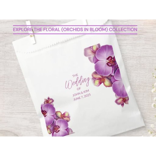 Create personalised wedding place cards. Great for warm weather events, weddings, anniversaries, outdoors, indoors. Use to complement floral wedding event themes, including tropical themes. Orchids in Bloom design. Use the template to personalise.