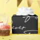 Modern white script "forever" text for wedding on black background.