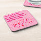 Pink themed coaster with romantic message poem on it