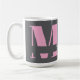 What a pretty way to keep the bride hydrated and relaxed during all those special wedding events! Perfect for bridal showers, bachelorette party, or even for the big event itself. This mug is just right for hot liquids like coffee, tea or cocoa. A sustainable gift which can be used in a million ways even after her big day has come and gone. This design features the word "Mrs" in medium pink on a deep grey background. Overlaying the large title "Mrs" is a space for the bride's new last name. The fully customisable text can be changed to the colour or word of your choice as well as transferred to other Zazzle products. Thank you for checking out one of my designs. Visit my shop, RoomShiners, here on Zazzle for more custom gifts for all her special days.