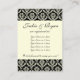 Wedding Gift Registration Card Damask Black Cream