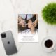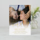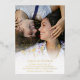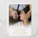 Simple and beautiful double sided two in one photo wedding invitation with your photo covering the wedding invite card. Join us for the wedding of is written over the lower half of your photo with wedding in a beautiful calligraphy script printed in gold foil. Your names in gold foil too. On the other side, add another photo and additional wedding information your guests will need.